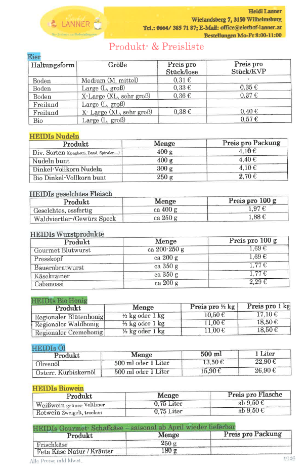 Die Firma Eierhof Lanner kommt jeden zweiten Mittwoch 8-9 Uhr